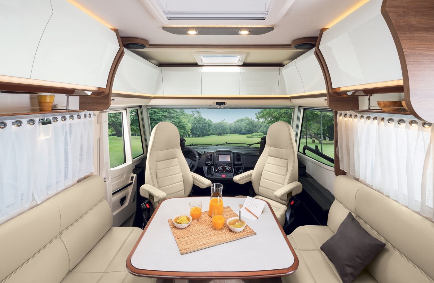 Con tavolo salotto con gamba telescopica per posizione letto.