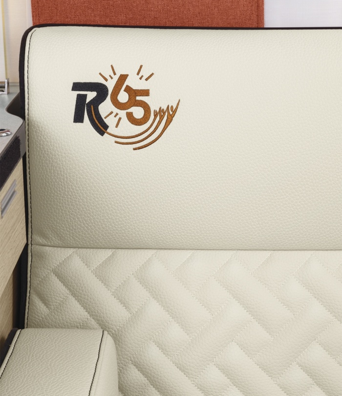 I modelli Anniversario presentano una selleria esclusiva ricamata 65 Anni (sui tessuti delle sellerie in TEP NOUMEA e PALMA).