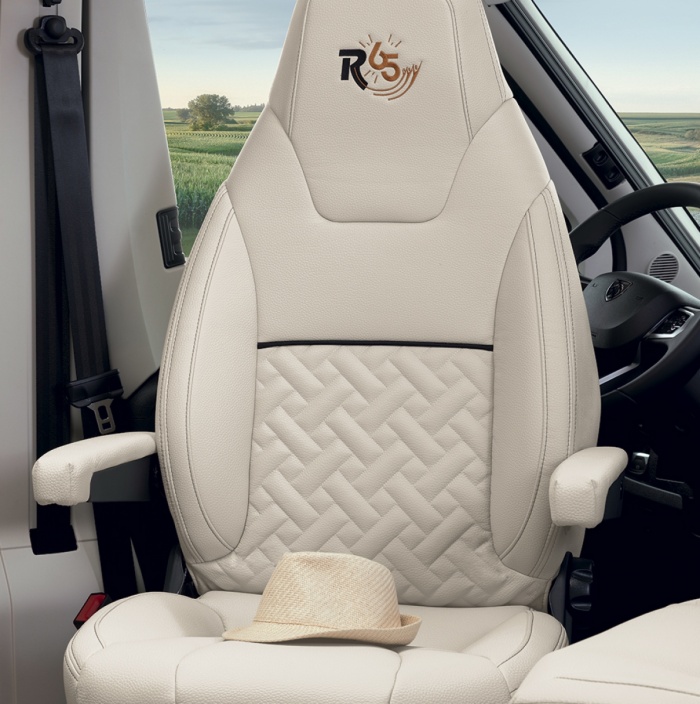 La selleria esclusiva con il raffinato ricamo «65 anni» è proposta di serie nei tessuti PALMA e NOUMEA. Scegliete il vostro stile di mobilio interno: LUCEO, con colori chiari e delicati per un'atmosfera luminosa, oppure NACARAT, con tonalità più scure per un ambiente accogliente.