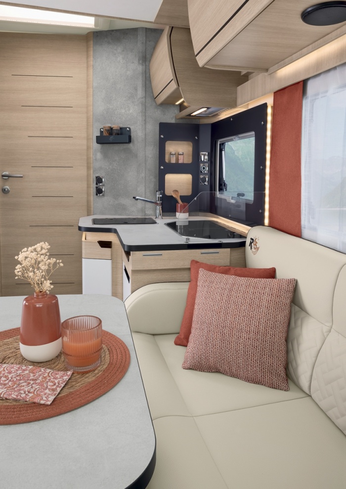 I cuscini coordinati sottolineano l'eleganza dell'interno, un vero marchio di fabbrica dell'arte del vivere secondo RAPIDO.